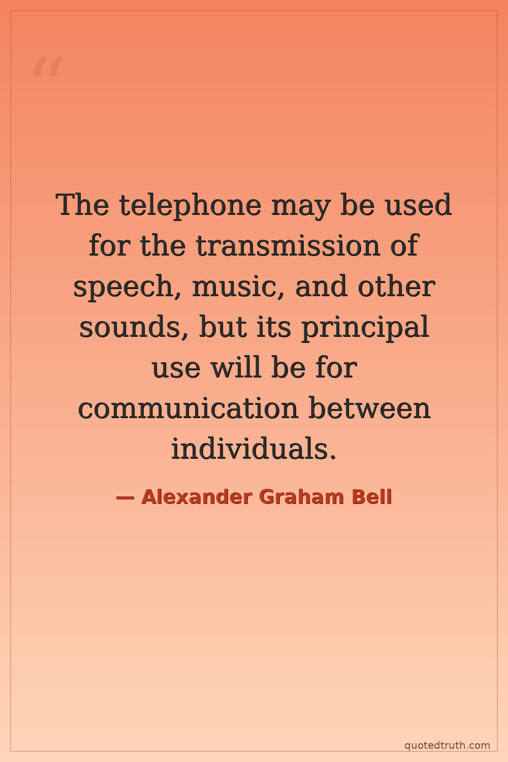The telephone may be used for the transmission of speech, music, and other sounds, but its principal use will be for communication between individuals.
