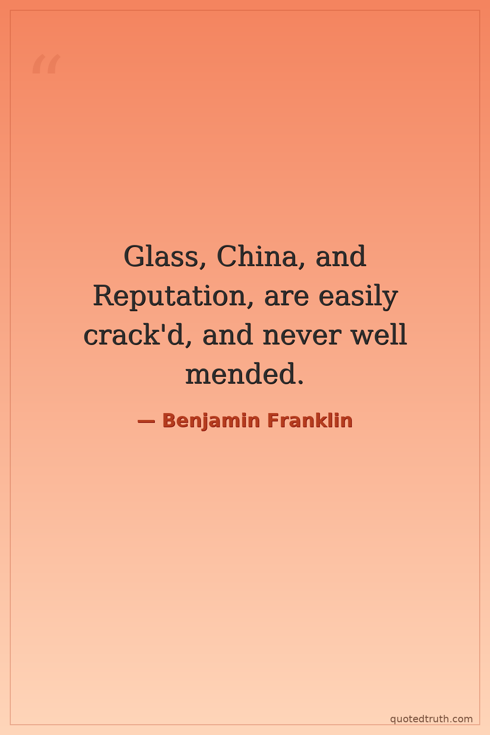 Glass, China, and Reputation, are easily crack'd, and never well mended.