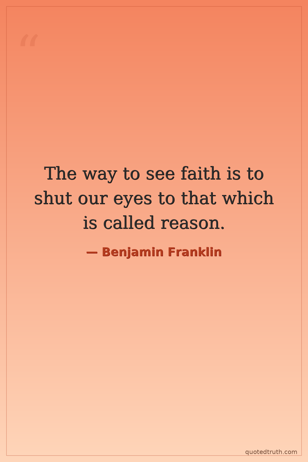 The way to see faith is to shut our eyes to that which is called reason.