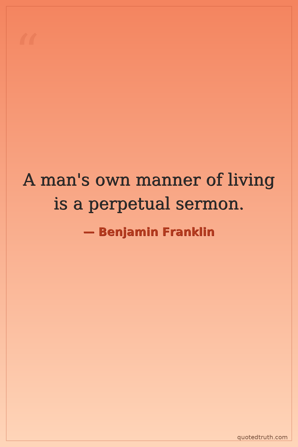 A man's own manner of living is a perpetual sermon.