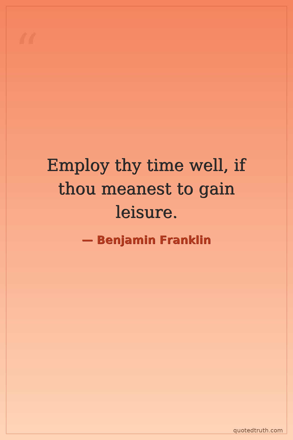 Employ thy time well, if thou meanest to gain leisure.