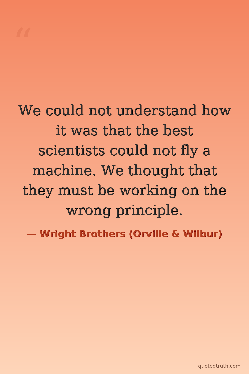 We could not understand how it was that the best scientists could not fly a machine. We thought that they must be working on the wrong principle.
