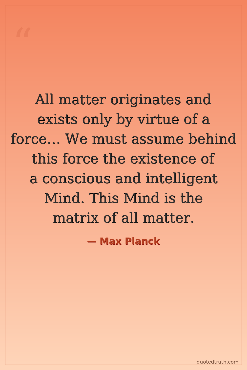 All matter originates and exists only by virtue of a force… We must assume behind this force the existence of a conscious and intelligent Mind. This Mind is the matrix of all matter.