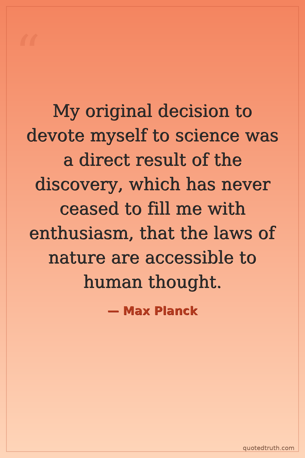 My original decision to devote myself to science was a direct result of the discovery, which has never ceased to fill me with enthusiasm, that the laws of nature are accessible to human thought.