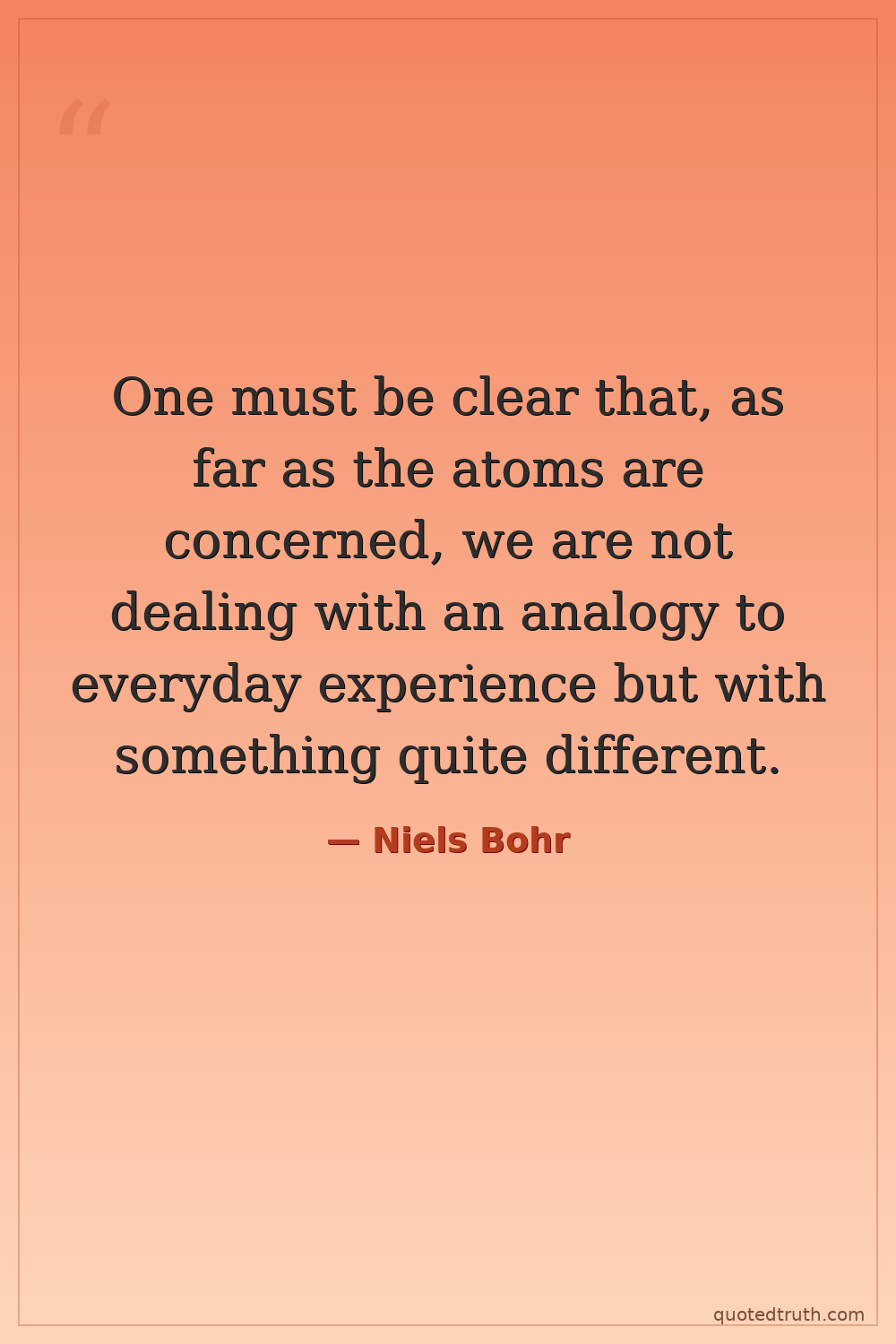One must be clear that, as far as the atoms are concerned, we are not dealing with an analogy to everyday experience but with something quite different.