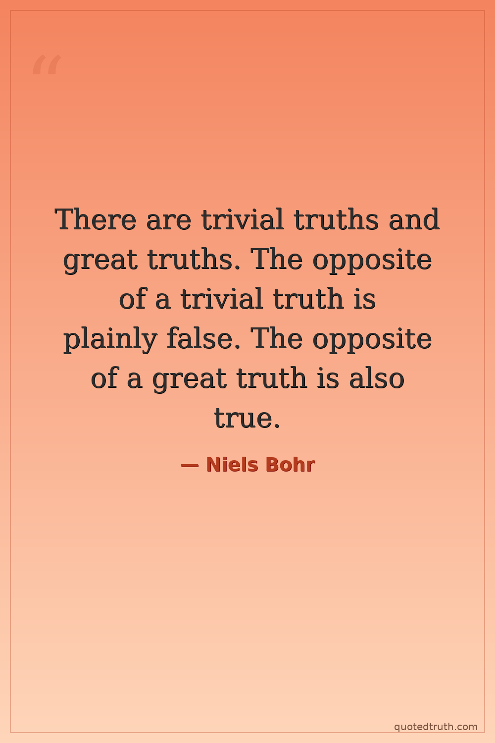 There are trivial truths and great truths. The opposite of a trivial truth is plainly false. The opposite of a great truth is also true.