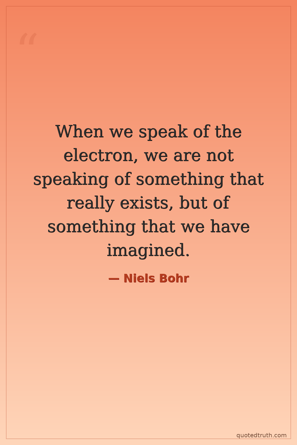 When we speak of the electron, we are not speaking of something that really exists, but of something that we have imagined.