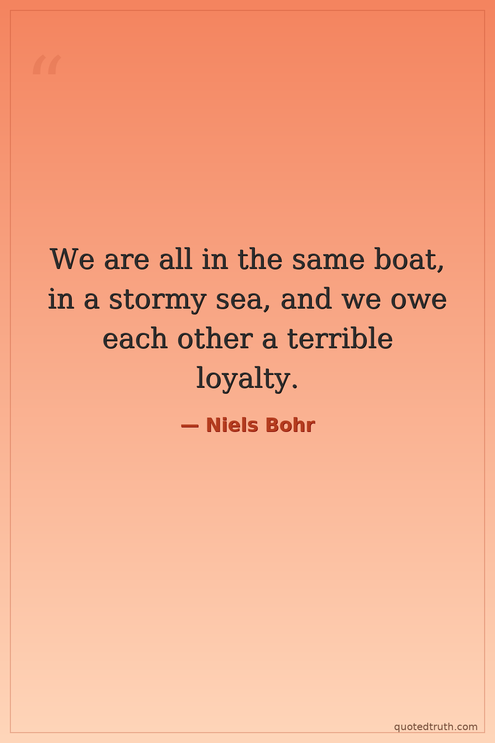 We are all in the same boat, in a stormy sea, and we owe each other a terrible loyalty.