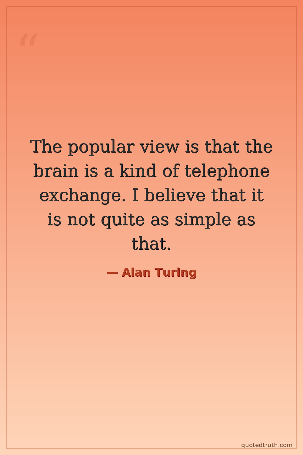 The popular view is that the brain is a kind of telephone exchange. I believe that it is not quite as simple as that.