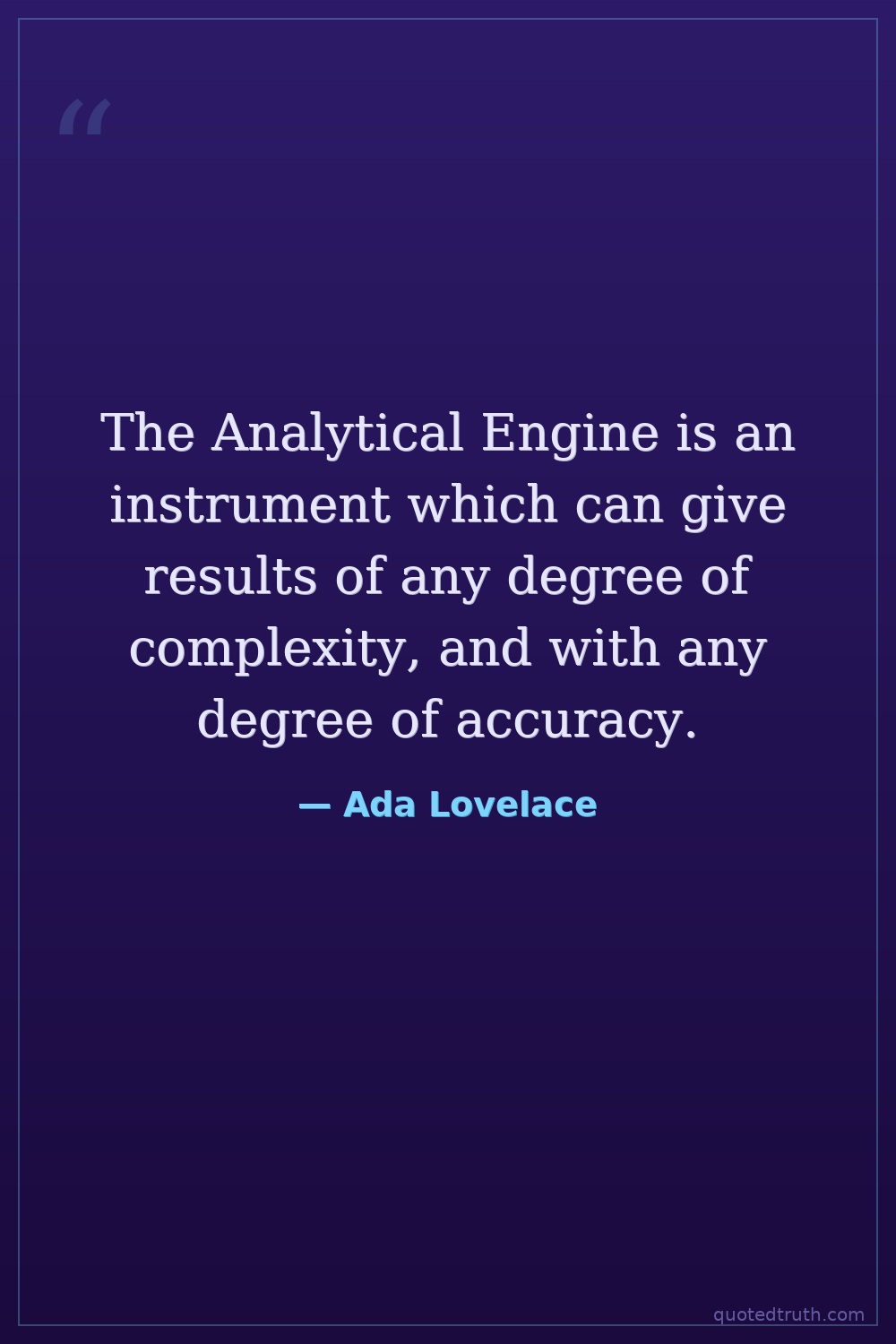 The Analytical Engine is an instrument which can give results of any degree of complexity, and with any degree of accuracy.