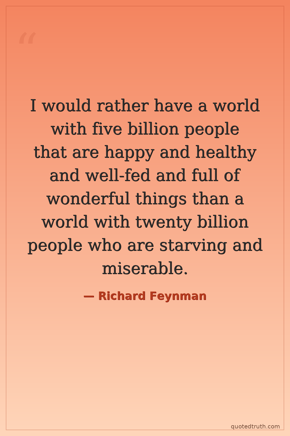 I would rather have a world with five billion people that are happy and healthy and well-fed and full of wonderful things than a world with twenty billion people who are starving and miserable.