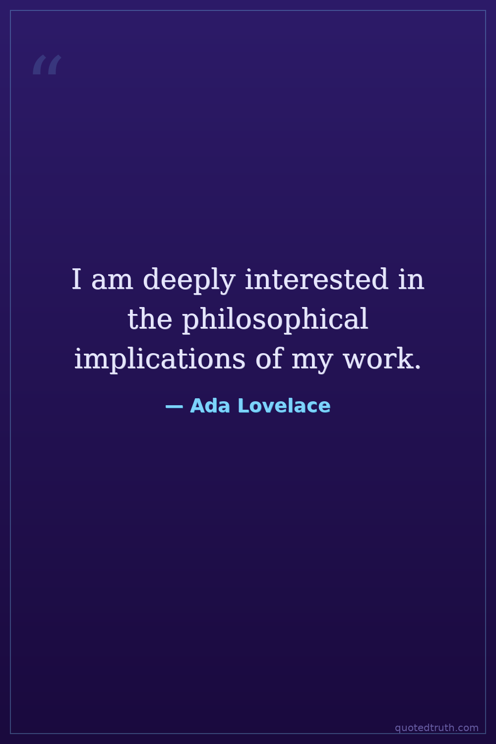I am deeply interested in the philosophical implications of my work.