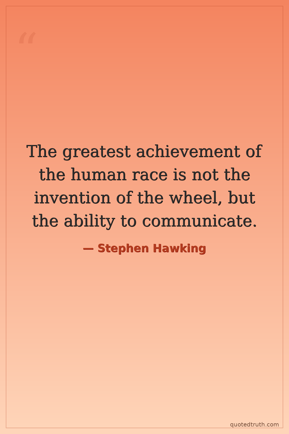 The greatest achievement of the human race is not the invention of the wheel, but the ability to communicate.