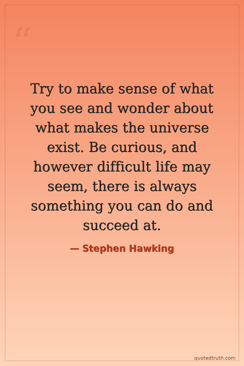 Try to make sense of what you see and wonder about what makes the universe exist. Be curious, and however difficult life may seem, there is always something you can do and succeed at.