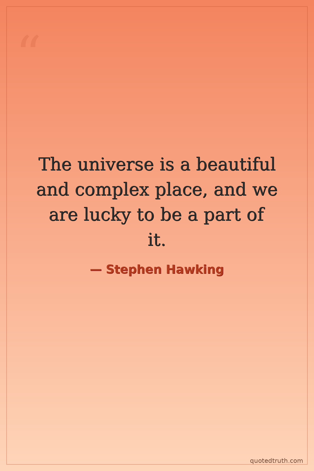 "I think that the universe is a beautiful and complex place, and I'm very lucky to be able to study it."
