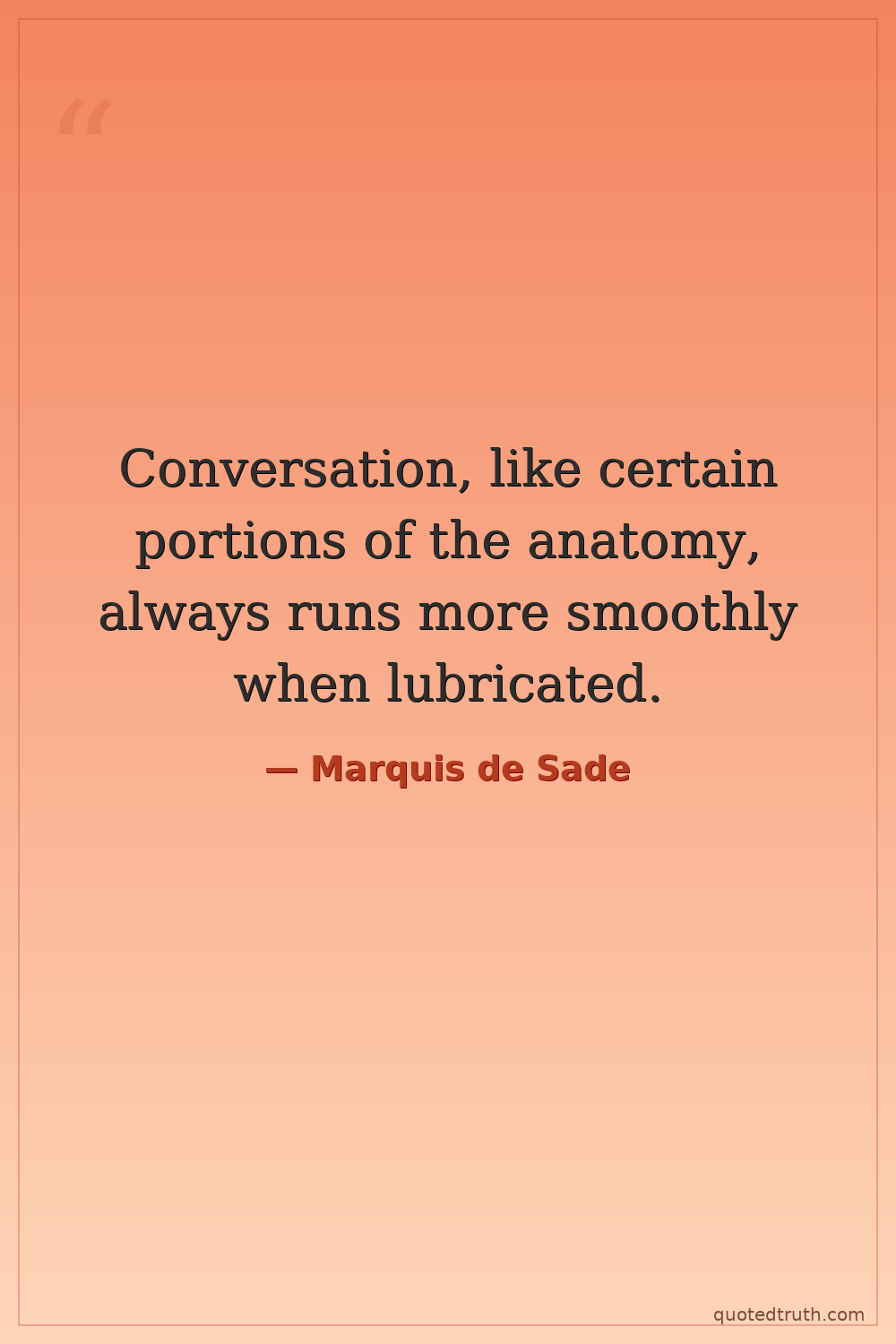 Humorous"Nothing that makes one hard is wicked and the only crime in the world is to refuse oneself that pleasure."