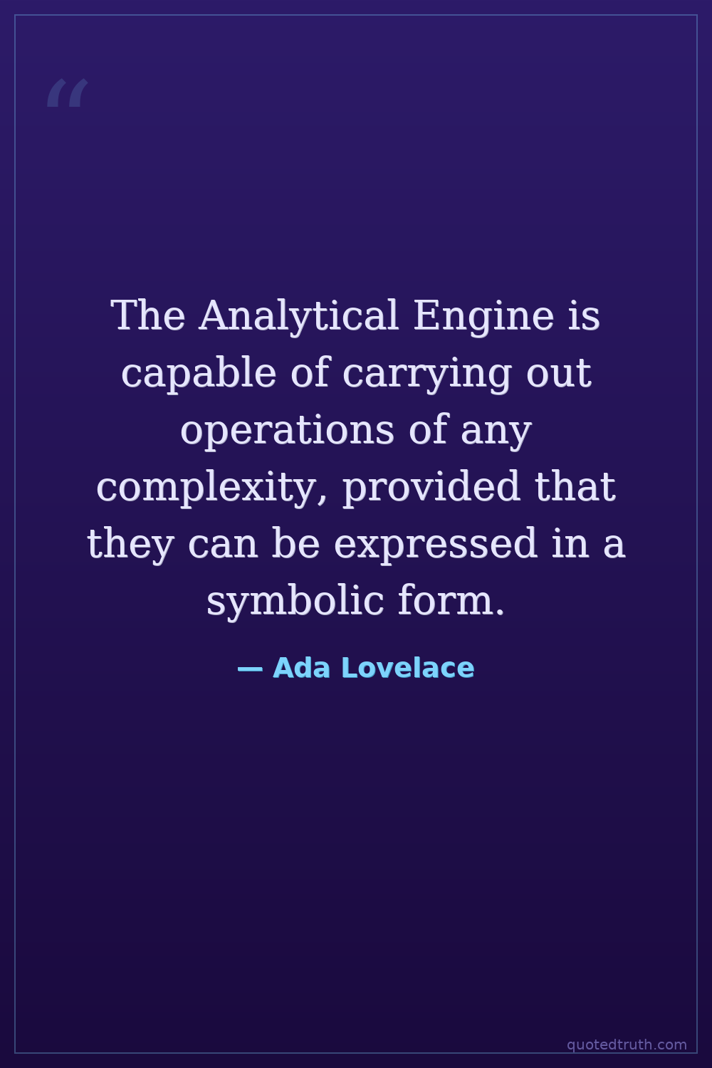 The Analytical Engine is capable of carrying out operations of any complexity, provided that they can be expressed in a symbolic form.
