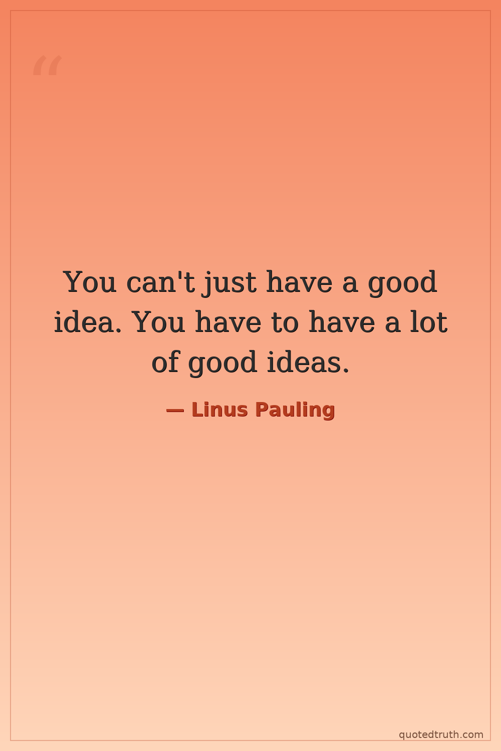 "The best way to have a good idea is to have a lot of ideas."
