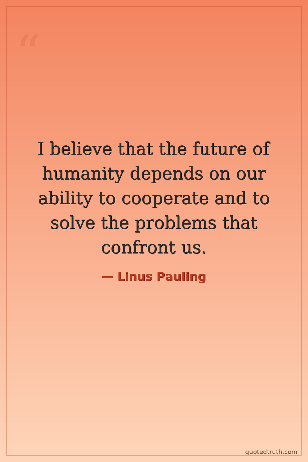I believe that the future of humanity depends on our ability to cooperate and to solve the problems that confront us.