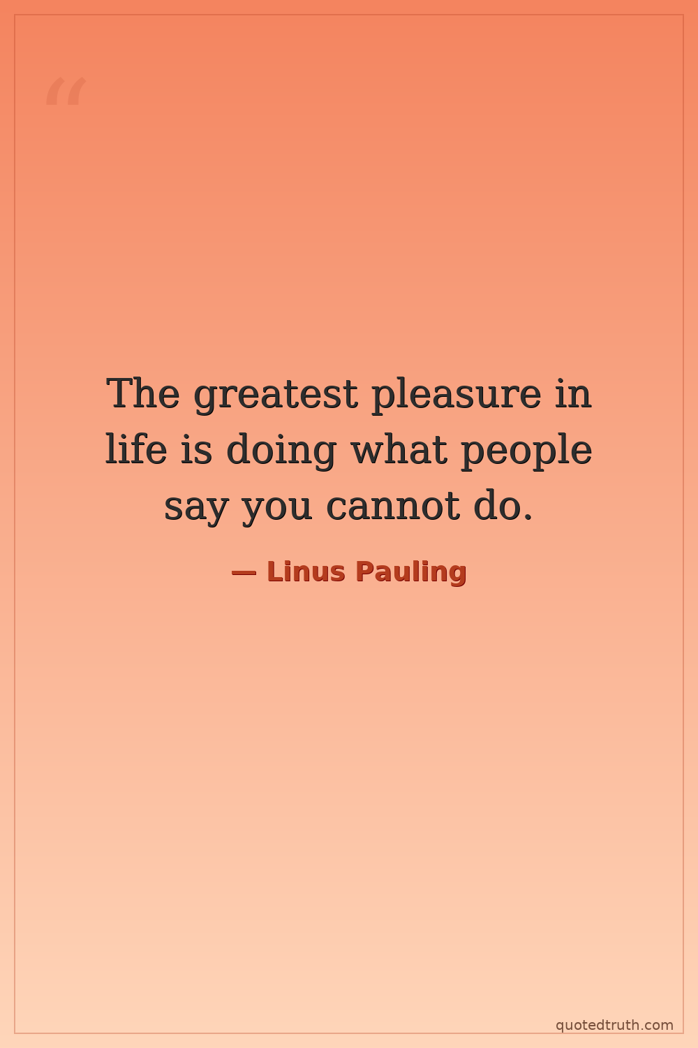The greatest pleasure in life is doing what people say you cannot do.
