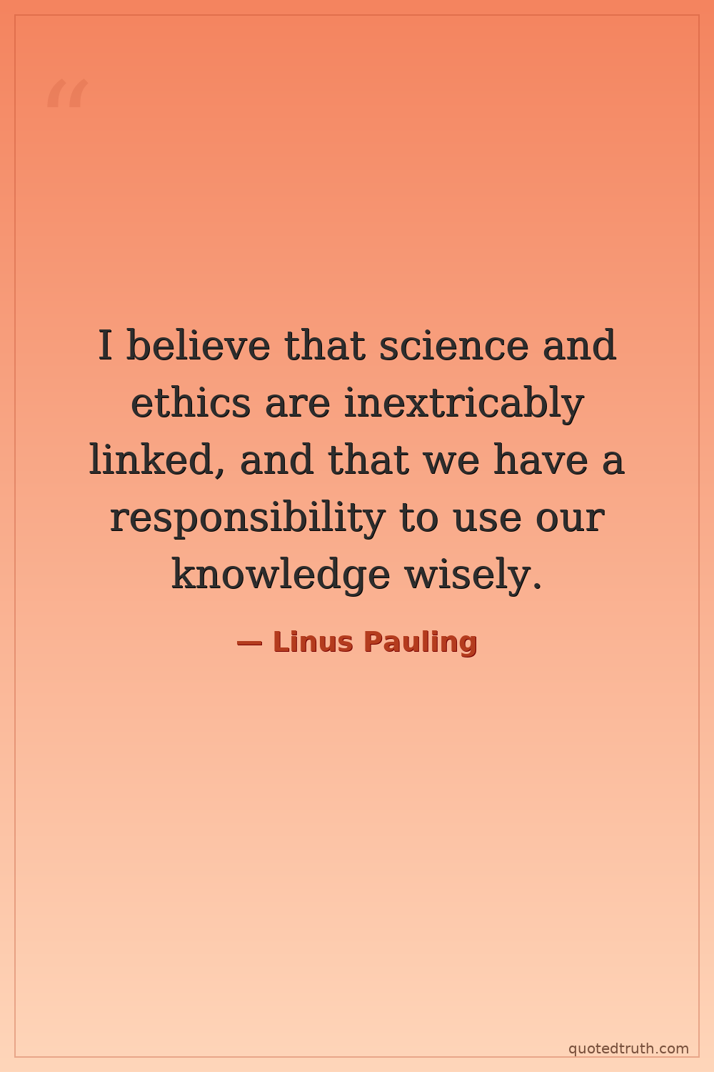 I believe that science and ethics are inextricably linked, and that we have a responsibility to use our knowledge wisely.