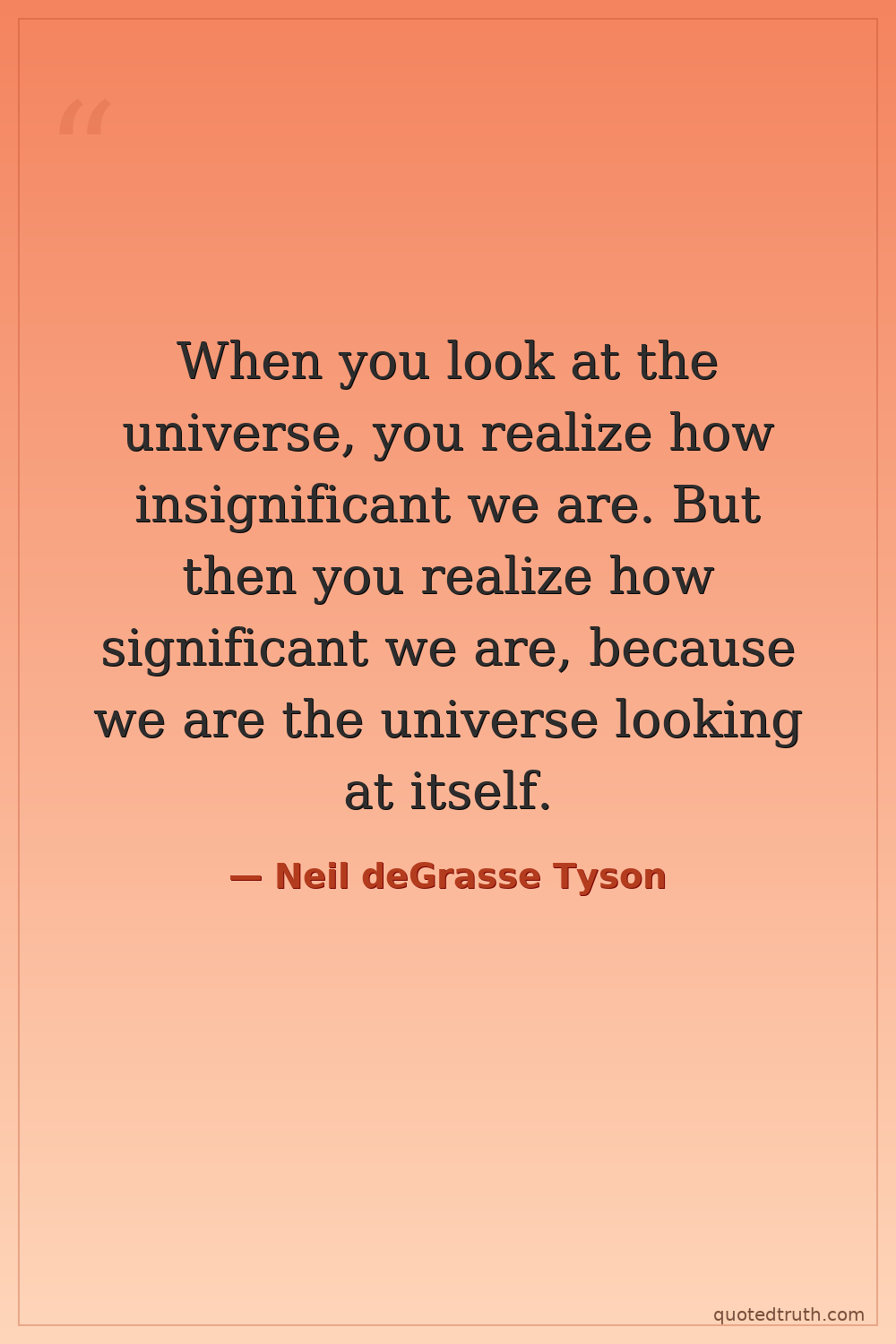 When you look at the universe, you realize how insignificant we are. But then you realize how significant we are, because we are the universe looking at itself.