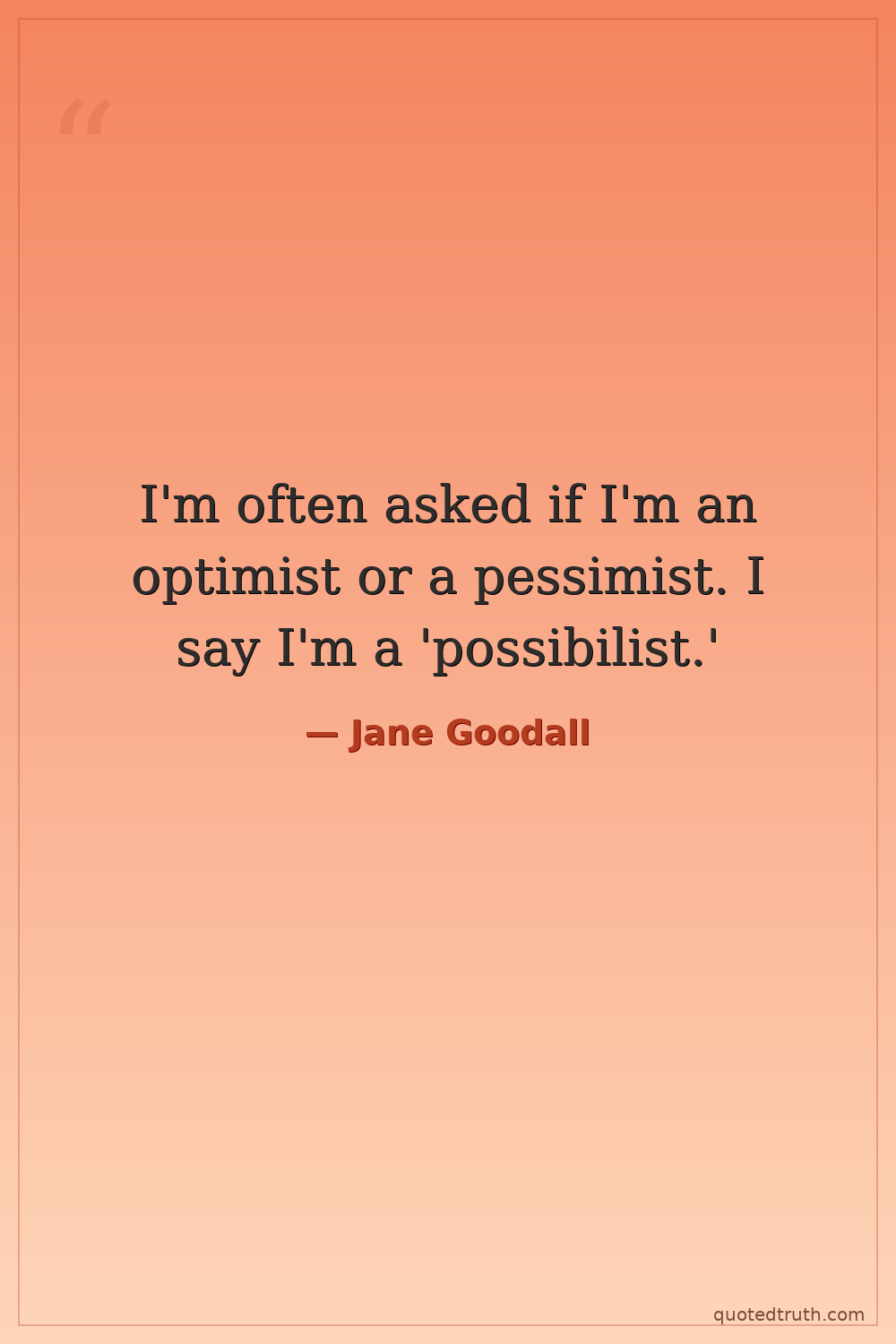 I'm often asked if I'm an optimist or a pessimist. I say I'm a 'possibilist.'
