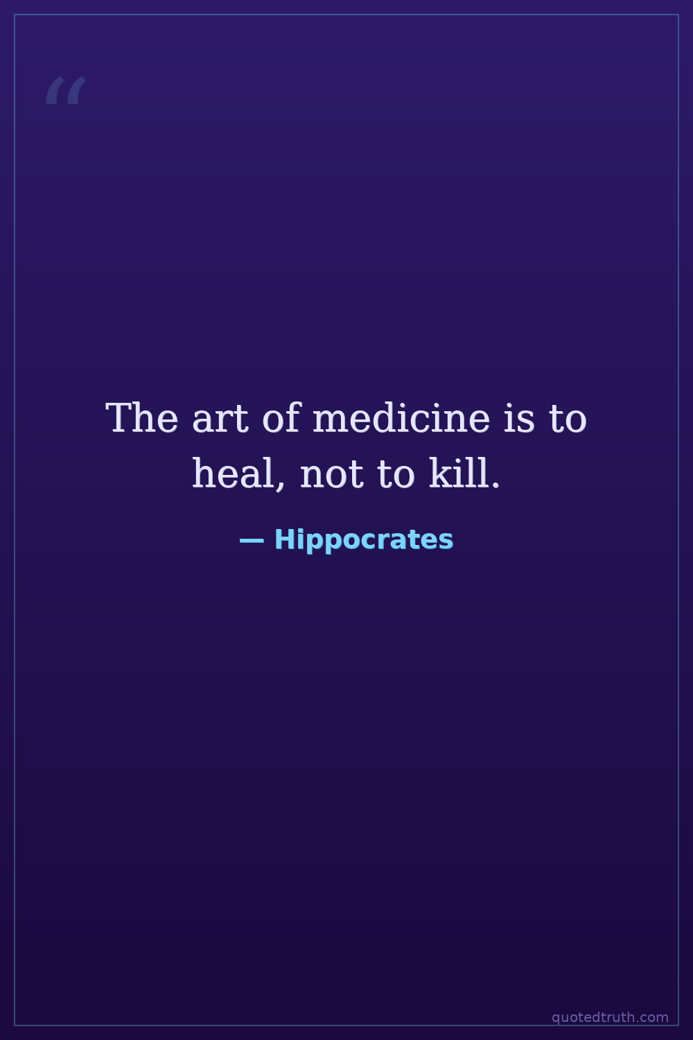 The art of medicine is to heal, not to kill.