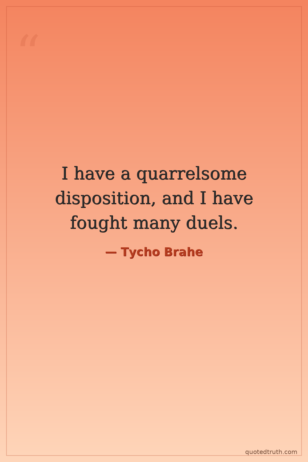 I have a quarrelsome disposition, and I have fought many duels.