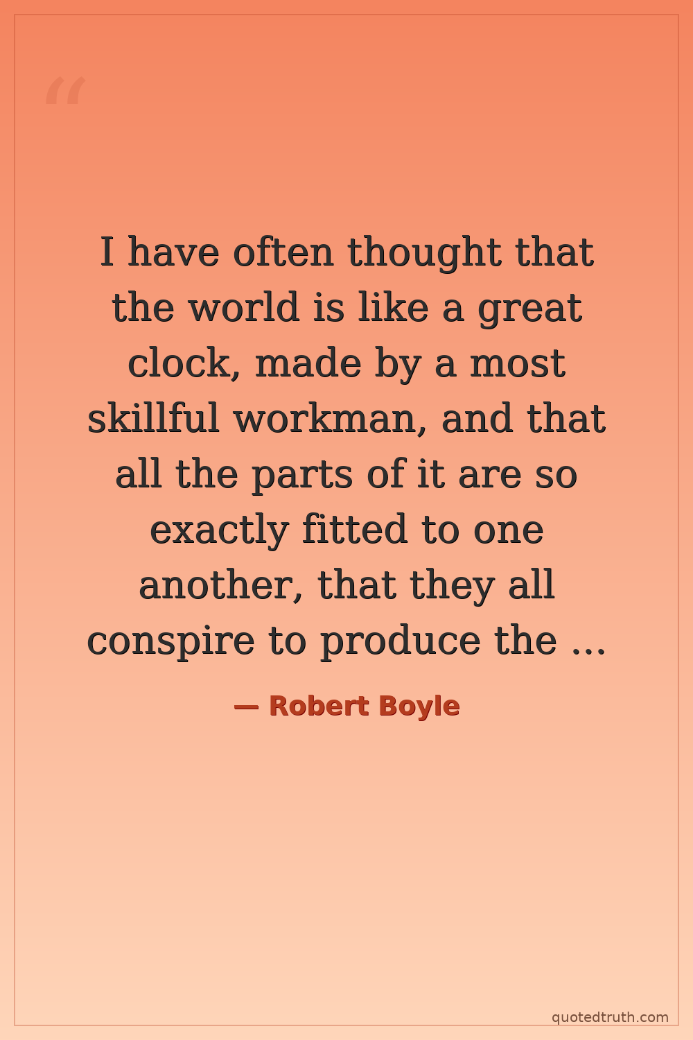 I have often thought that the world is like a great clock, made by a most skillful workman, and that all the parts of it are so exactly fitted to one another, that they all conspire to produce the same effect.
