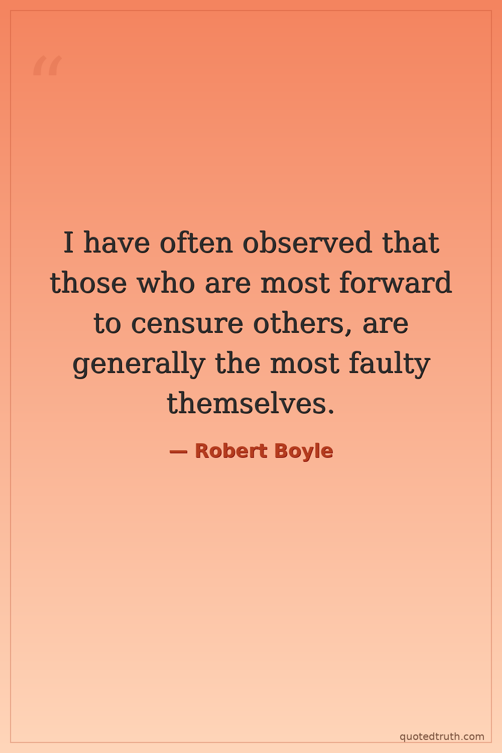 I have often observed that those who are most forward to censure others, are generally the most faulty themselves.