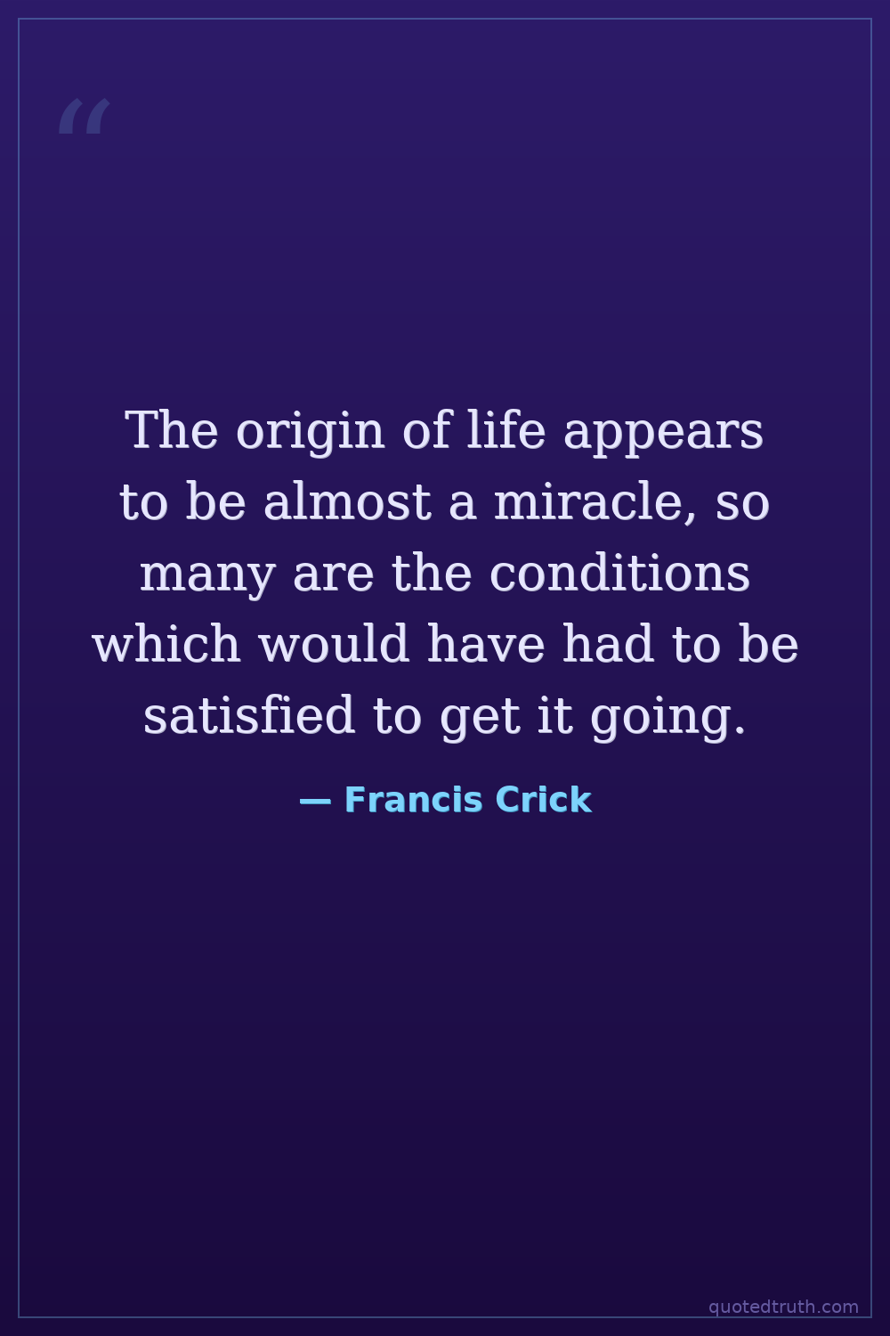 The origin of life appears to be almost a miracle, so many are the conditions which would have had to be satisfied to get it going.