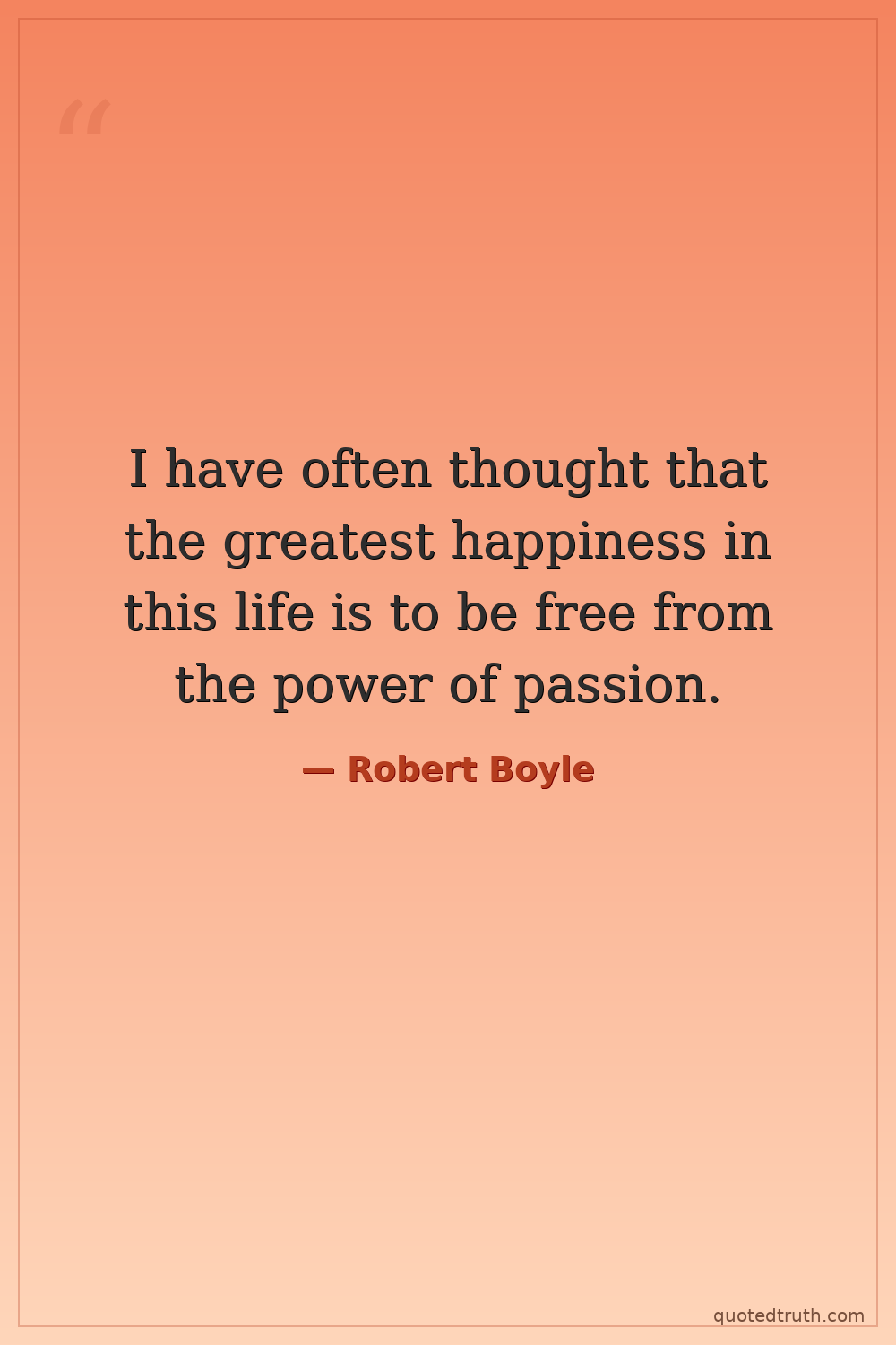 I have often thought that the greatest happiness in this life is to be free from the power of passion.