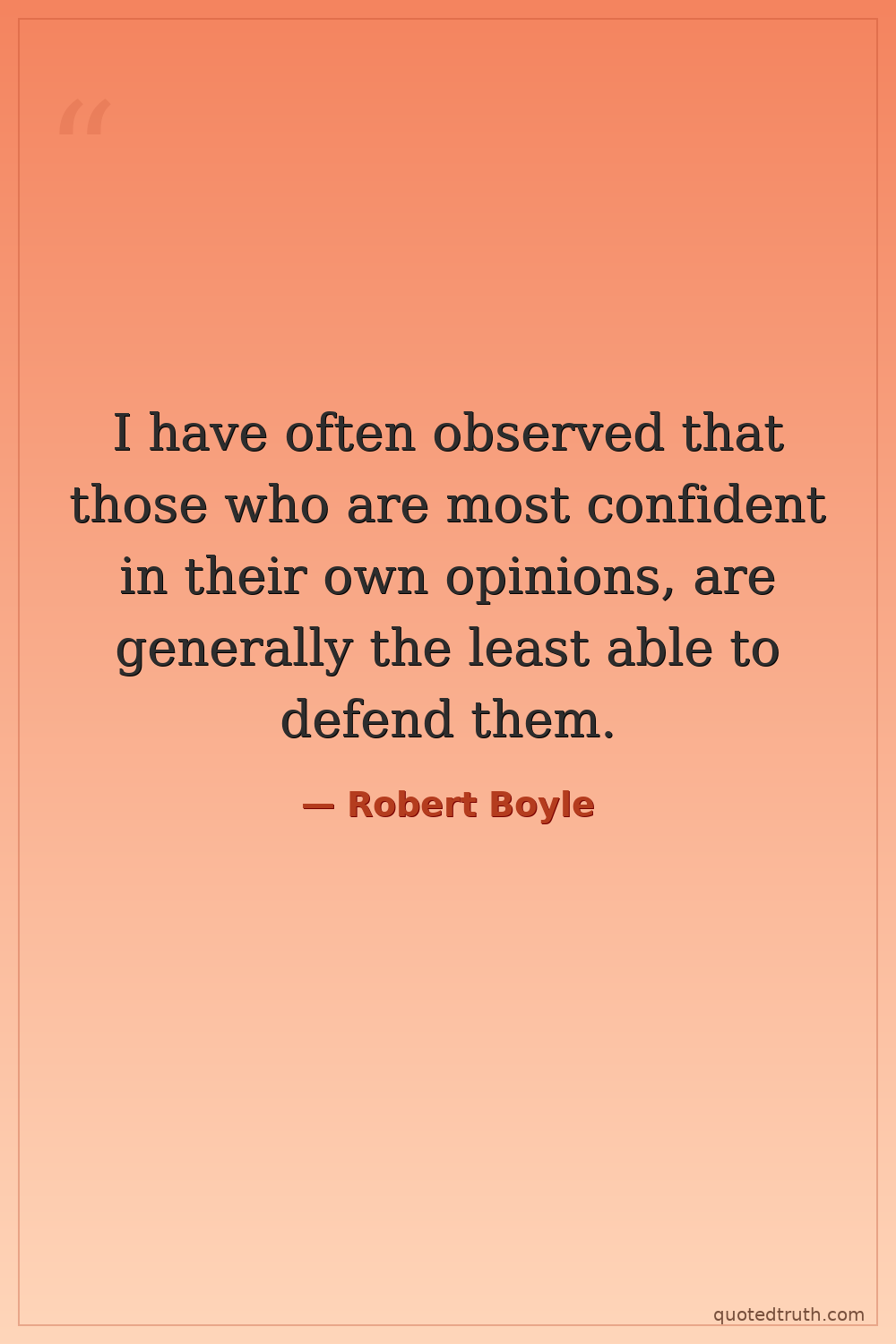 I have often observed that those who are most confident in their own opinions, are generally the least able to defend them.