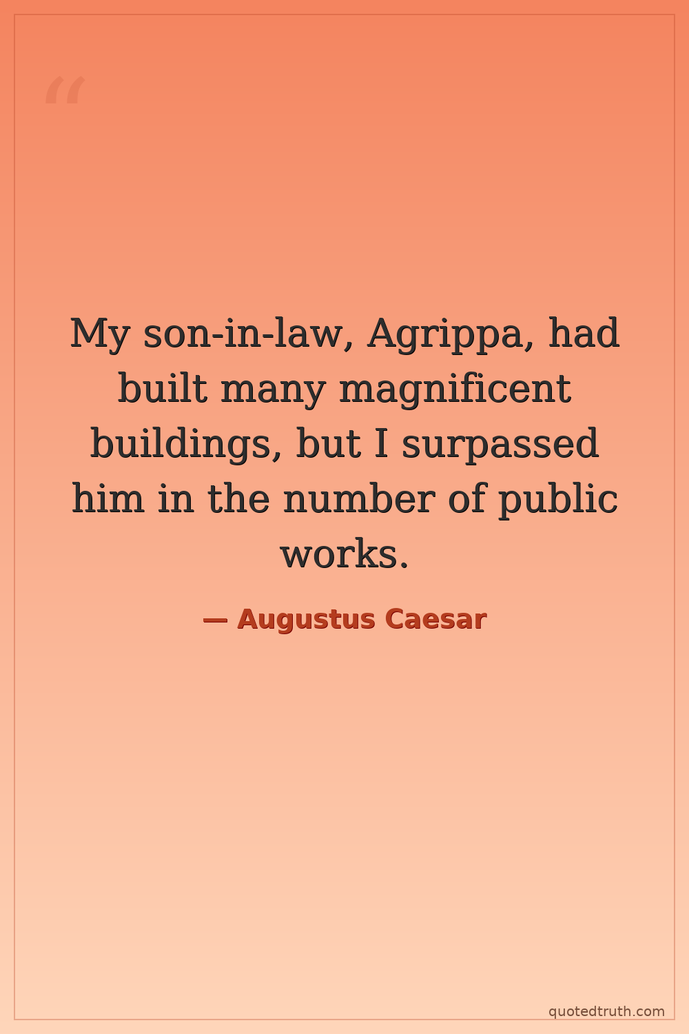 My son-in-law, Agrippa, had built many magnificent buildings, but I surpassed him in the number of public works.