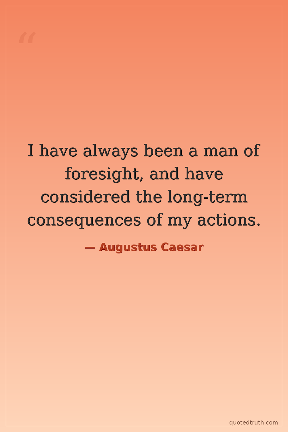 I have always been a man of foresight, and have considered the long-term consequences of my actions.