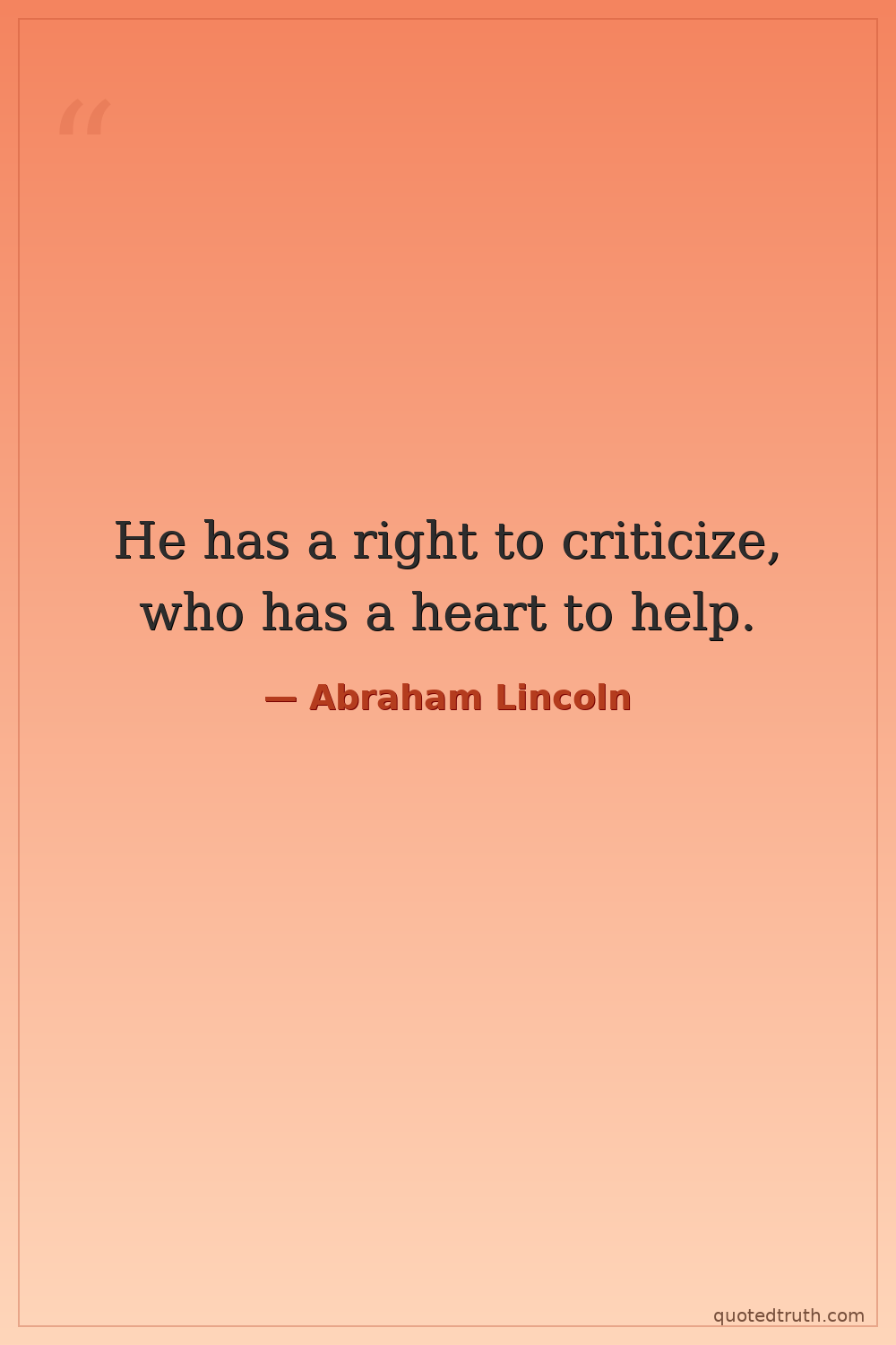 He has a right to criticize, who has a heart to help.