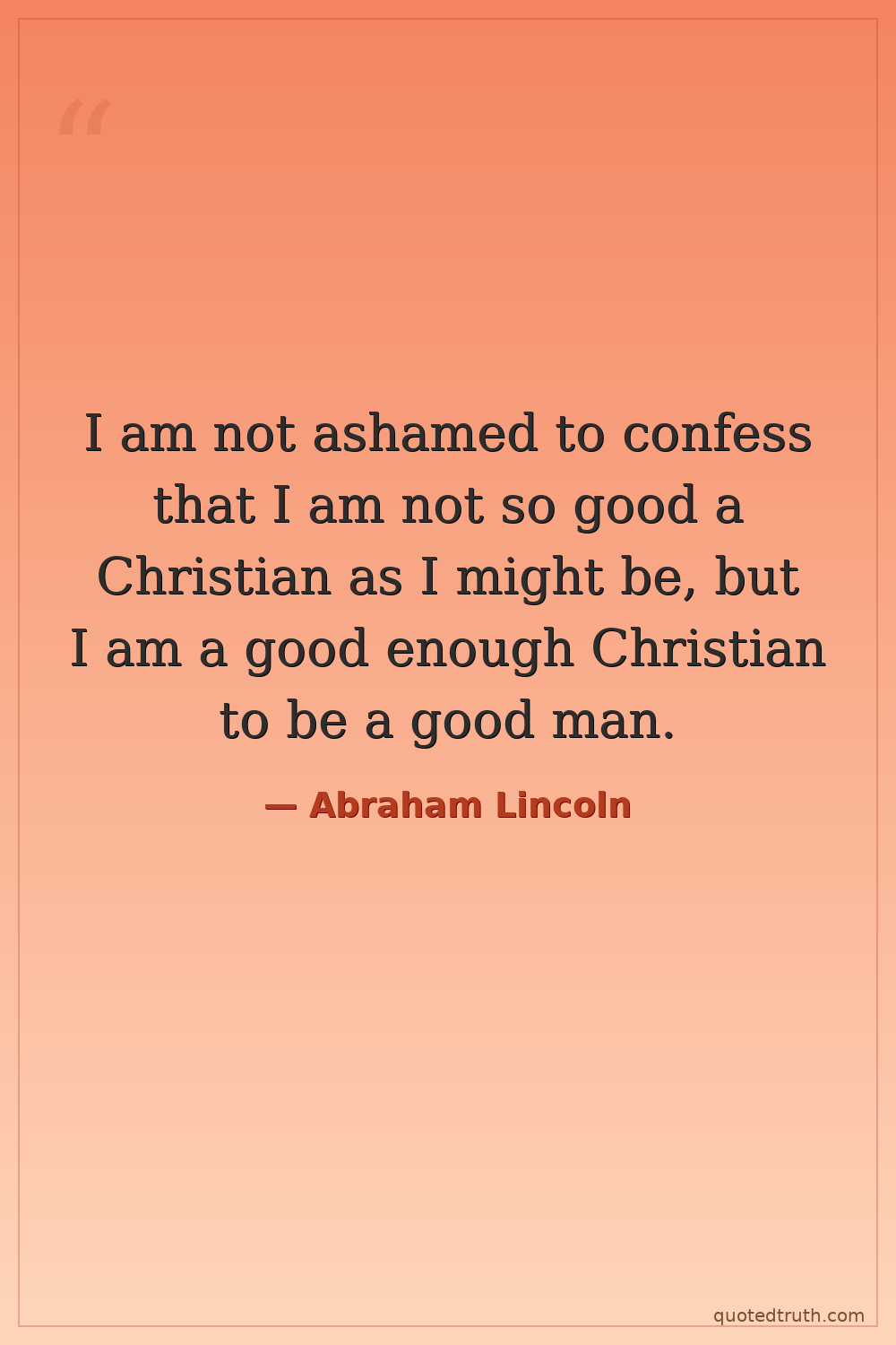 I am not ashamed to confess that I am not so good a Christian as I might be, but I am a good enough Christian to be a good man.