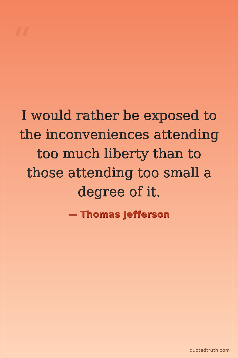I would rather be exposed to the inconveniences attending too much liberty than to those attending too small a degree of it.