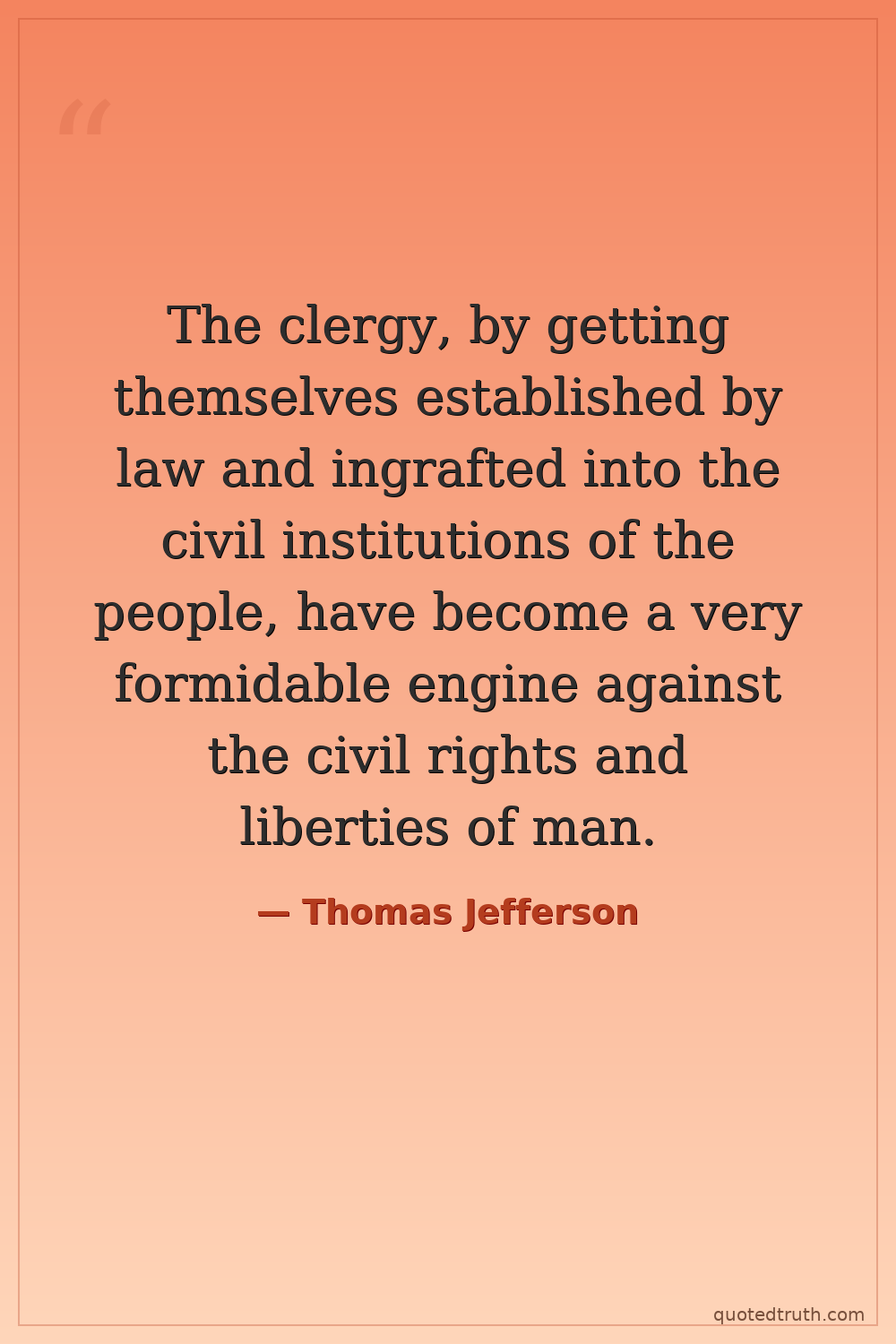 The clergy, by getting themselves established by law and ingrafted into the civil institutions of the people, have become a very formidable engine against the civil rights and liberties of man.