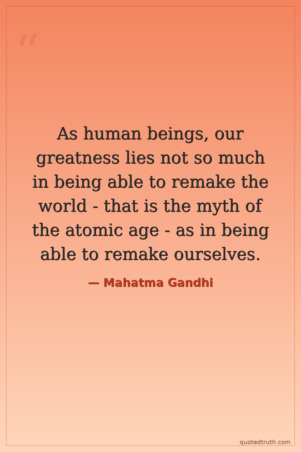 As human beings, our greatness lies not so much in being able to remake the world - that is the myth of the atomic age - as in being able to remake ourselves.