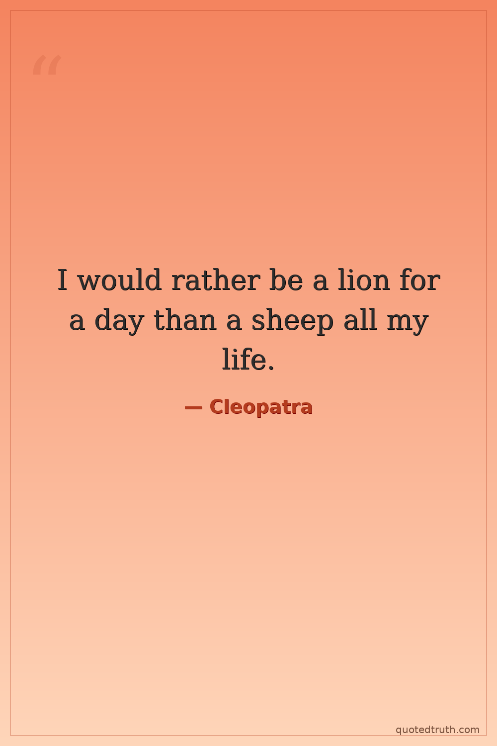 I would rather be a lion for a day than a sheep all my life.