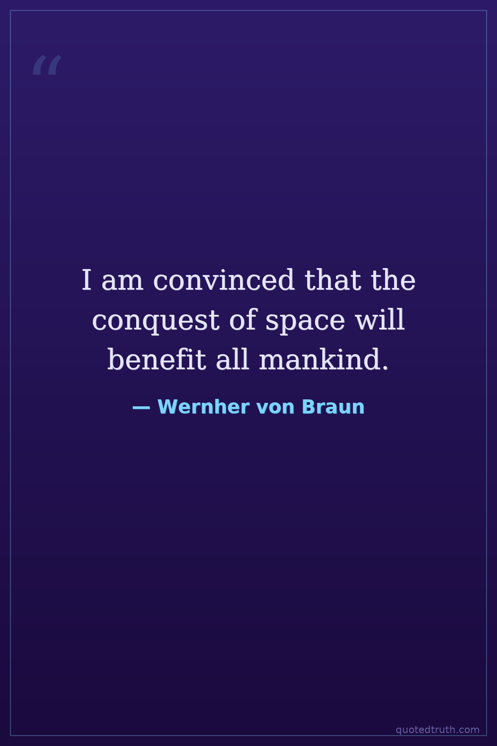 I am convinced that the conquest of space will benefit all mankind.