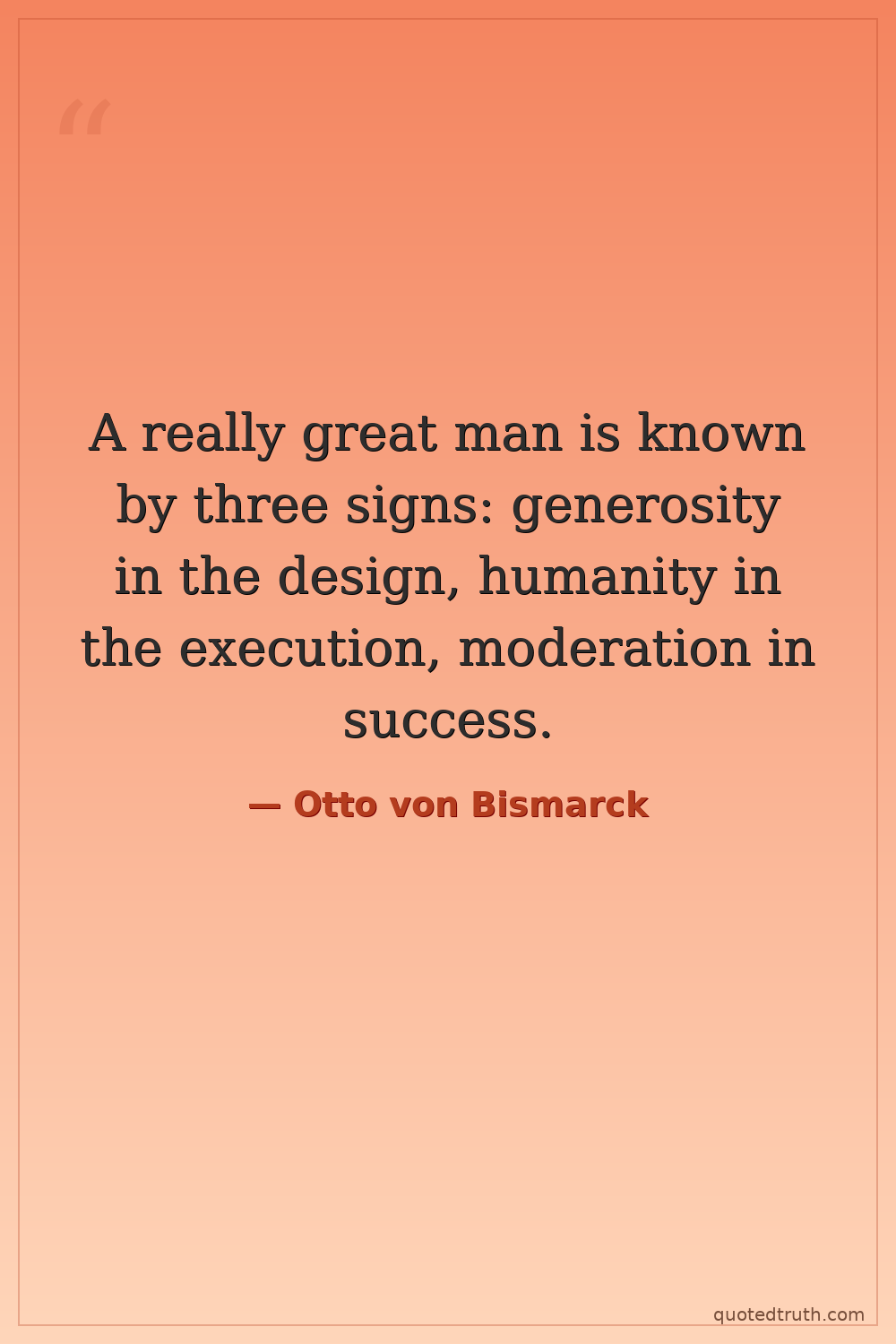 A really great man is known by three signs: generosity in the design, humanity in the execution, moderation in success.
