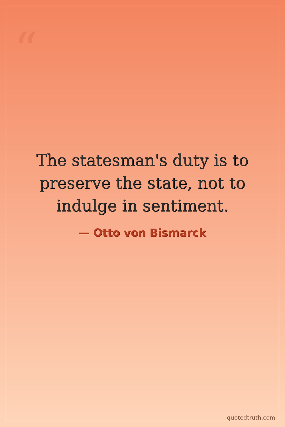 The statesman's duty is to preserve the state, not to indulge in sentiment.