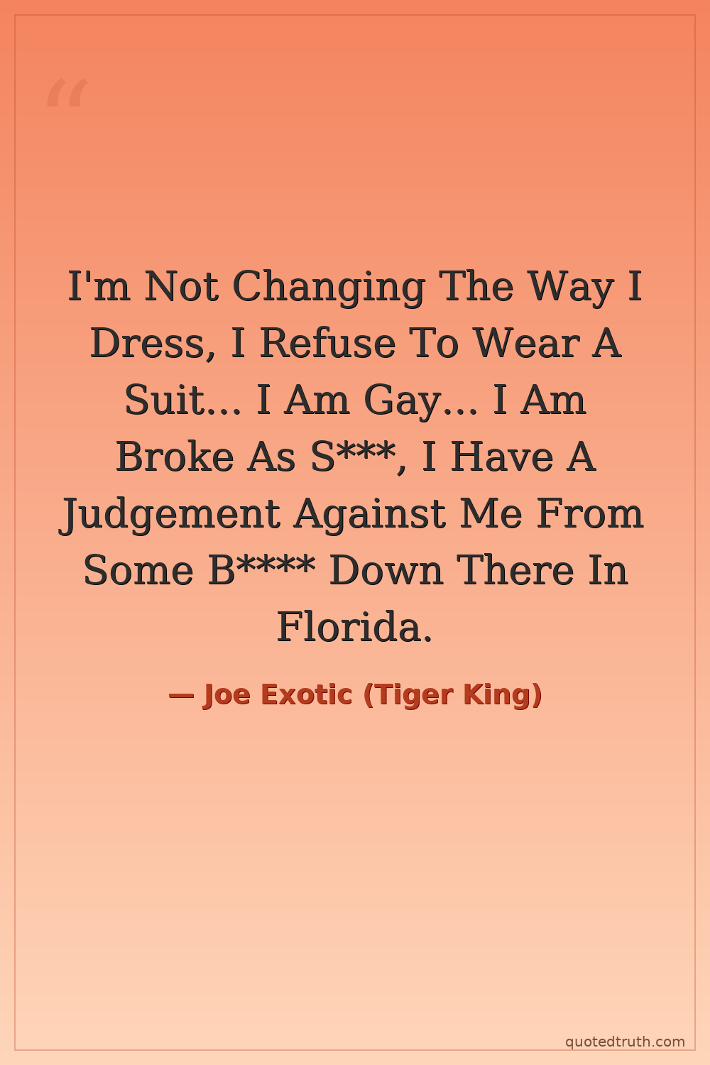 I'm Not Changing The Way I Dress, I Refuse To Wear A Suit... I Am Gay... I Am Broke As S***, I Have A Judgement Against Me From Some B**** Down There In Florida.