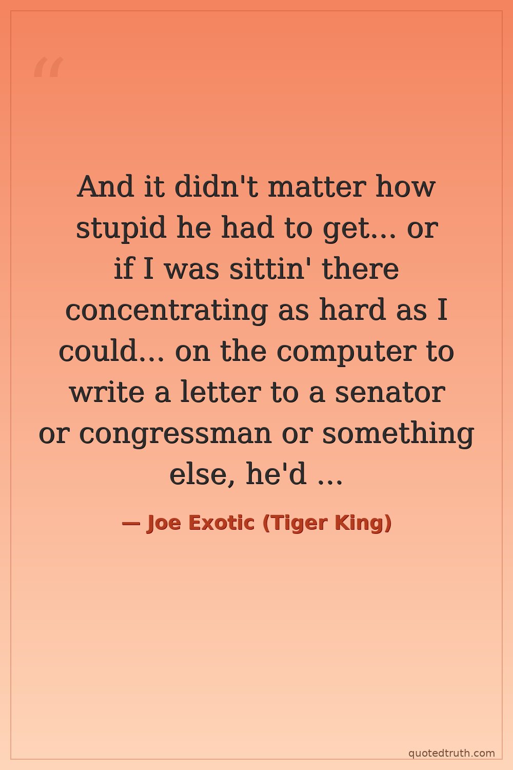 And it didn't matter how stupid he had to get... or if I was sittin' there concentrating as hard as I could... on the computer to write a letter to a senator or congressman or something else, he'd come and rub them balls in my face.