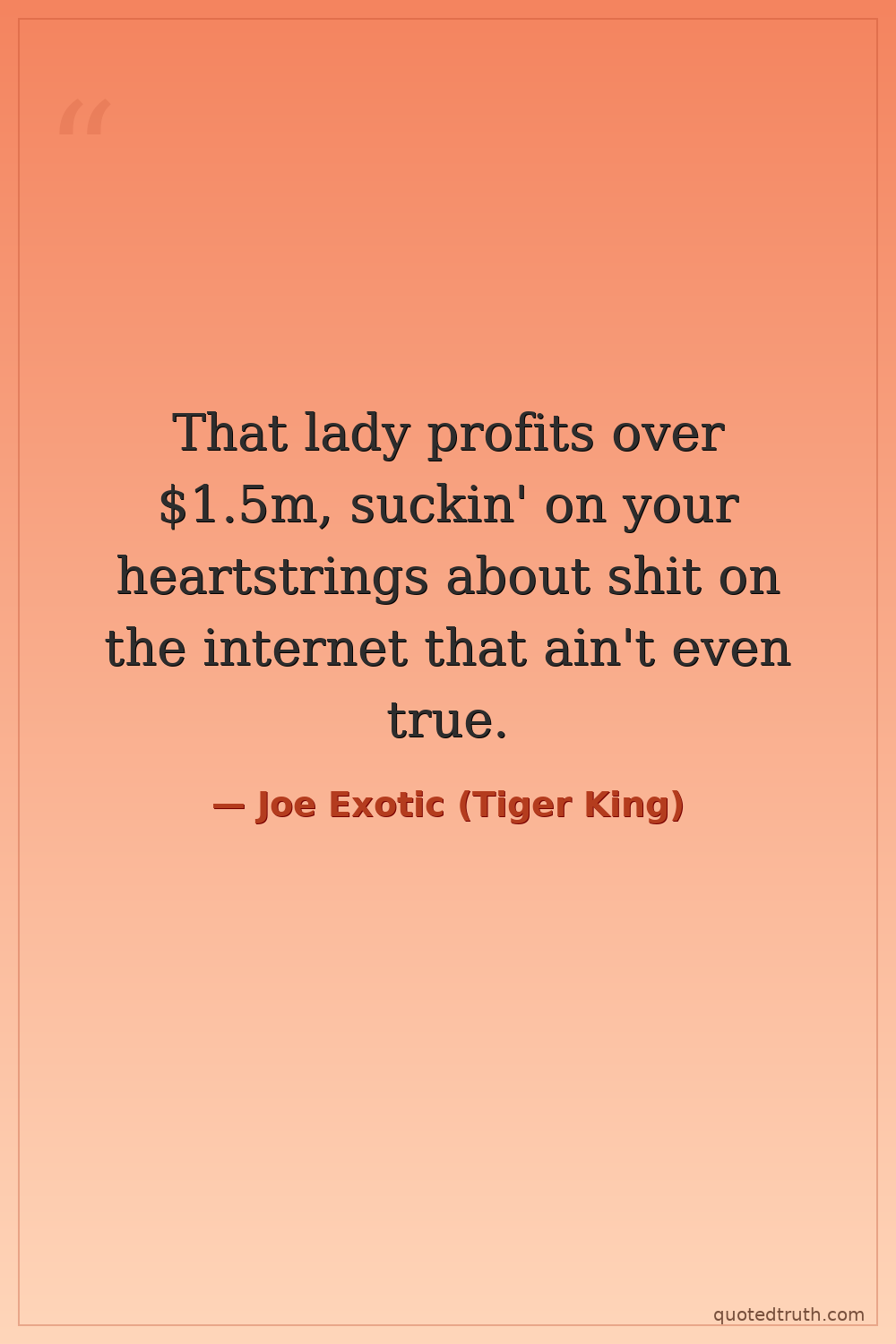 "I had the most beautiful, privately owned zoo in the world… Anybody who ever complained about my cages being too small... All they had to do is donate money to build a bigger cage."
