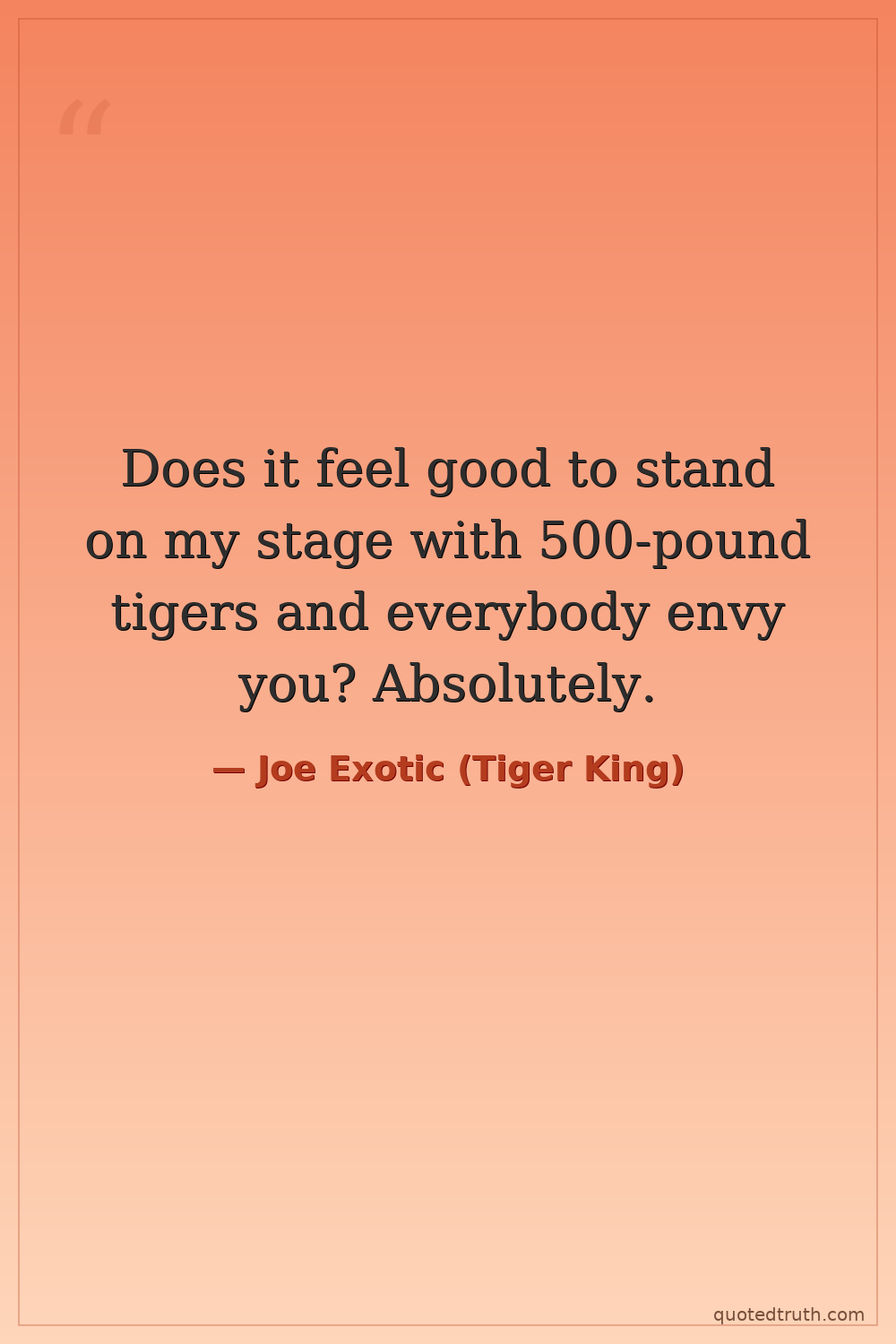 Does it feel good to stand on my stage with 500-pound tigers and everybody envy you? Absolutely.