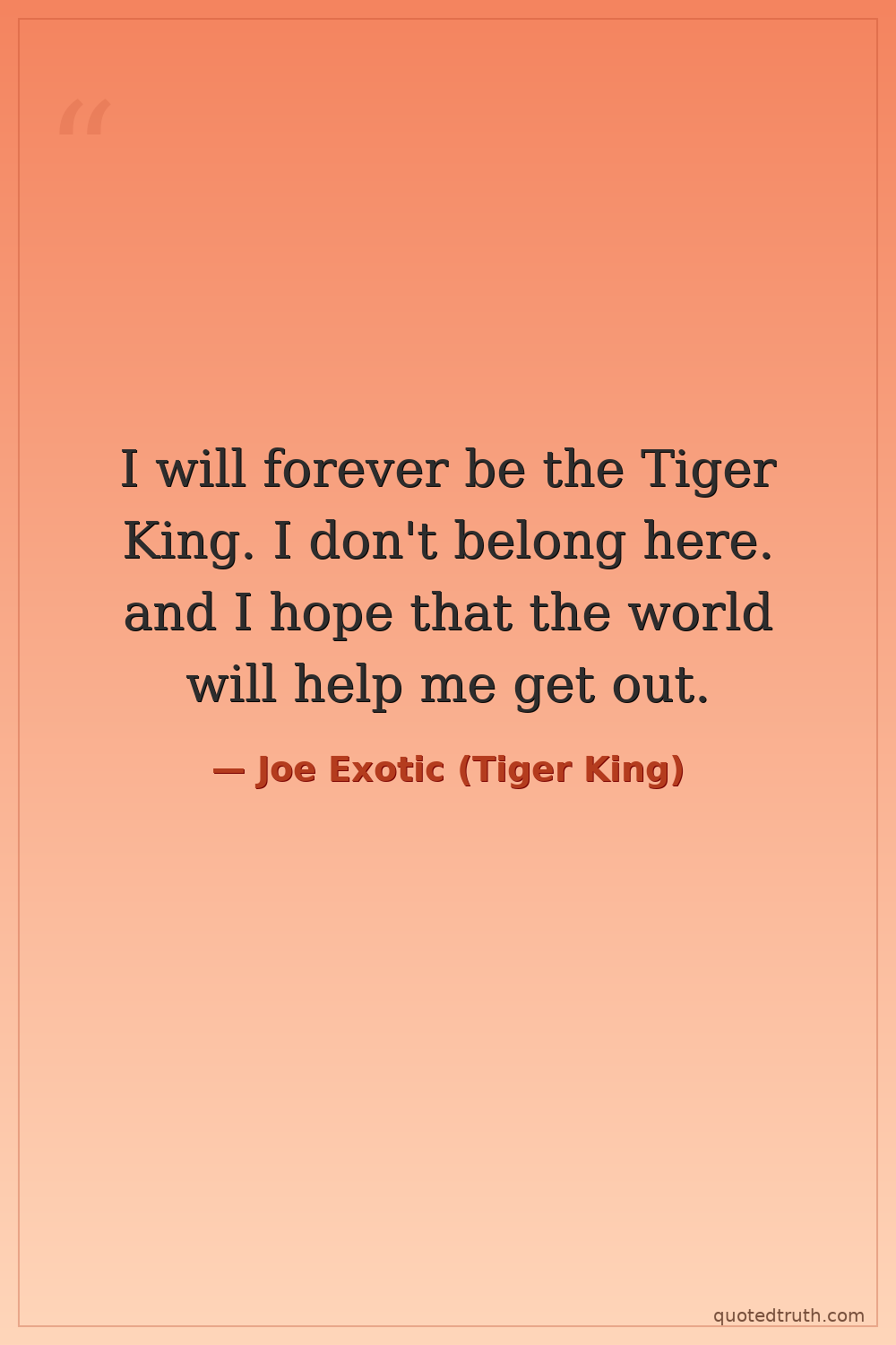 I will forever be the Tiger King. I don't belong here. and I hope that the world will help me get out.